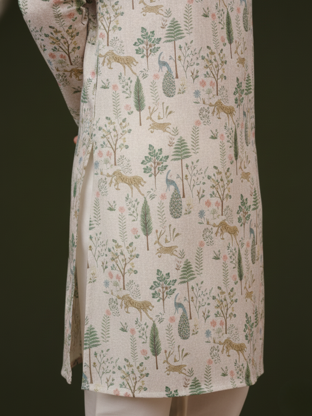 Crafted from a premium cotton blend, this kurta offers a luxurious feel with breathable comfort, making it perfect for both festive daytime occasions and elegant evening gatherings.